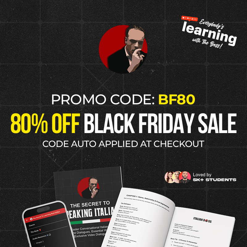The Boss Method focuses on real conversation skills, not just memorization. You learn practical Italian and get direct support inside the Boss Platform.